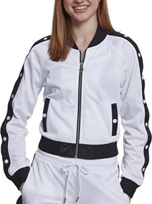 Damen Sweatjacke Ladies Button Up Track Jacket TB1996, Gr. Large (Herstellergröße: L), Weiß (Wht/Blk/Wht 00863)