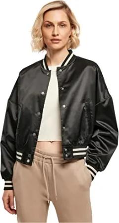 Damen Women's Short Oversized Satin College Jacket Jacke, Schwarz, 5XL EU
