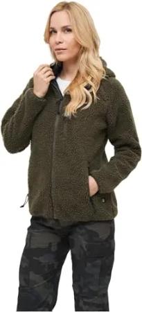 Women Teddyfleece Jacket Hooded, Farbe: olive, Größe: S