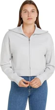 Damen Sweatshirt mit Reißverschluss French Terry Badge Logo aus Baumwolle, Grau (Bc06 Grey Heather), M