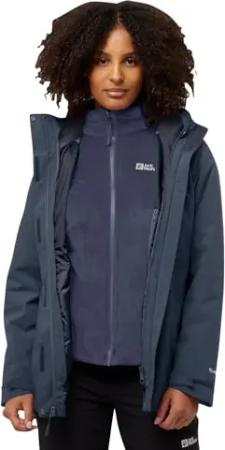 Damen 3in1 Jacket Style Okere WMS, wasserdichte, atmungsaktive Outdoorjacke mit herausnehmbarer Fleecejacke, warme 3in1 Jacke mit verstellbarer Kapuze, navy blazer, 40