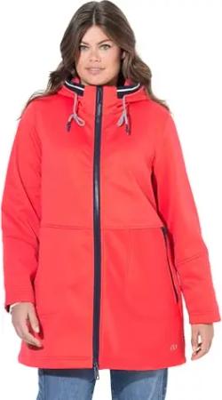 Damen große Größen Übergrößen Plus Size Softshell-Longjacke, wasserdicht, Regentropfen-Muster, Kapuze manderine 46+ 837623653-46+