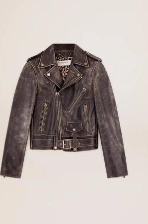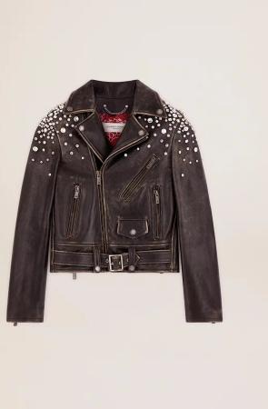Damen-bikerjacke Aus Leder Mit Distressed-finish Und Cabochon-kristallen, Frau, Größe: 38