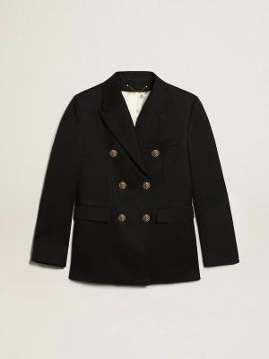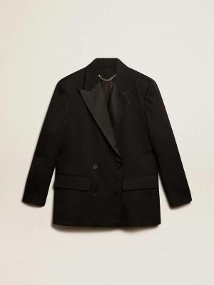 Schwarze Damen-smokingjacke Aus Wollgabardine, Frau, Größe: 36