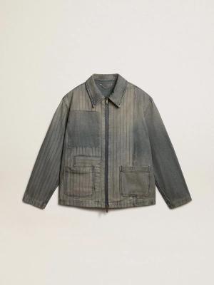 Herren-jeansjacke Mit Streifen Und Patches Auf Der Vorderseite, Mann, Größe: L