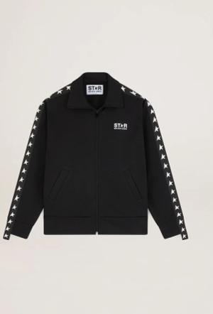 Schwarzes Damen-sweatshirt Mit Reißverschluss Und Weißen Sternen, Frau, Größe: L