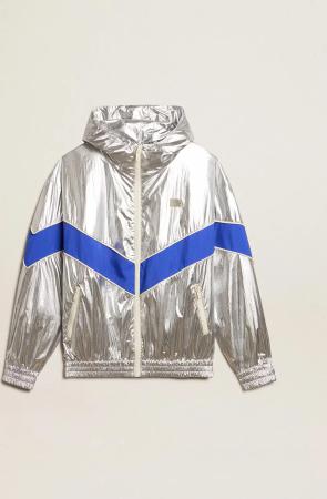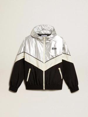Windjacke Für Damen Aus Technischem Gewebe In Silber Und Schwarz, Frau, Größe: 42