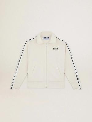 Weiße Damensweatjacke Mit Weißem Band Und Schwarzen Sternen, , Größe: L