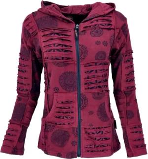 GURU SHOP Goa Patchwork Jacke, Boho Kapuzenjacke - Bordeaux, Damen, Size:M