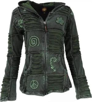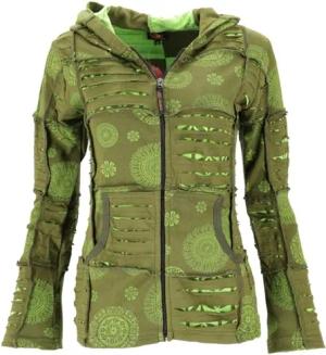 GURU SHOP Goa Patchwork Jacke, Boho Kapuzenjacke - Dunkelgrün, Damen, Size:M