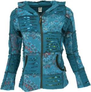 GURU SHOP Goa Patchwork Jacke, Boho Kapuzenjacke, Ethno Jacke - Petrol, Damen, Size:S