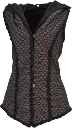 GURU SHOP Goa Weste mit Weiter, Flauschiger Kapuze `Flower of Life` - Schwarz/braun, Damen, Size:M