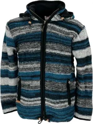 GURU SHOP Kuschelige Gefütterte Unisex Strickjacke, Gestreifte Wolljacke, Nepaljacke - Modell 15, Herren, Size:L