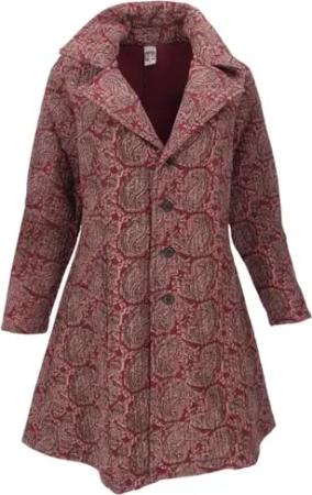 GURU SHOP Steppjacke, Kurzmantel, Boho Steppmantel - Burgundy, Damen, Size:M