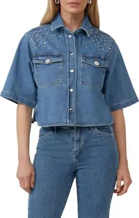 Jeansjacke mit kurzen Ärmeln und Nieten-Details