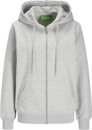 Damen Jxabbie RLX Ls Every Zip Hood SWT Noos Sweatshirt-Jacke, Light Grey Melange/Print:Bright White Jjxx Logo, L EU