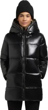 Damen kurzer Wintermantel warmer Steppmantel mit Kapuze in glänzender Optik Grana-YM Black Gr. M