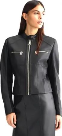 LIU.JO Damen Bikerjacke aus Leder, Größe 44, Schwarz , 38