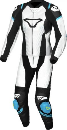 Tronniq perforierte Damen 2-Teiler Motorrad Lederkombi, schwarz-weiss-blau, Größe 42
