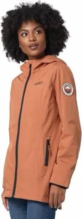 Übergangsjacke Damen (XS-XXL) - Atmungsaktiv, Innen Samtweicher Stoff, Kapuze, Winddicht - leichte Jacke lang - Stehkragen, 3 Taschen, verlängerter Zipper - Cinnamon XL