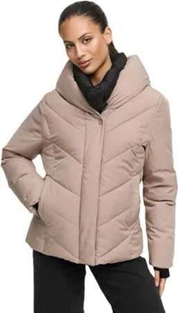 Damen Winterjacke (XS-XXL) - gesteppt, abnehmbare Kapuze, 6 Taschen - N091 - TaupGray Größe L - Gr.L