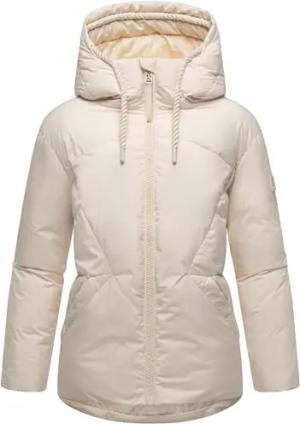 Damen Winterjacke warme Steppjacke mit verstellbarer Kapuze und magnetischen Details Pastellzauber 14 Cream Gr. XL