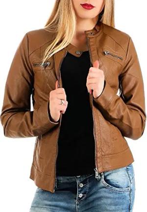 Damen Wildleder-Optik Biker-Jacke OnlSherry Übergangs-Jacke, Weathered Teak,34