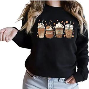 Süßes Damen-Sweatshirt mit Rundhalsausschnitt 2022, trendiger Kaffee-Grafik, niedlicher Pullover, langärmelig, modisch, lässig, Herbst-Shirt, UK-Werbeverkaufsausverkauf, A1_black, M