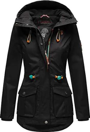 Damen leichte Übergangsjacke Baumwoll-Parka mit Kapuze Nyokoo Schwarz Gr. M