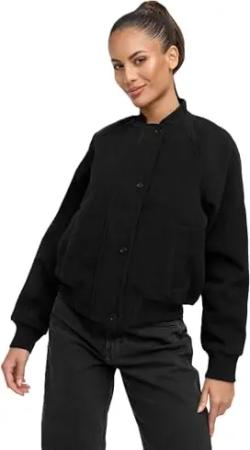 Damen Jacke (XS-XXL) - Übergangsjacke im College Bomber Jacken Style, mit Rippenbündchen, Warme Jacke Frauen - N054 (XL, Schwarz)