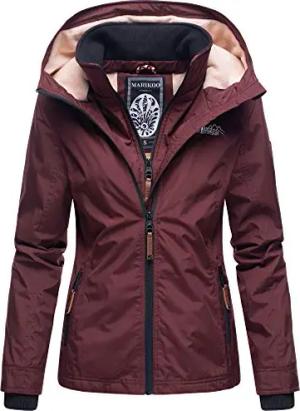 leicht gefütterte Damen Übergangsjacke kurze Sommerjacke mit kuscheligem Fleece-Innenfutter und großer Kapuze Erdbeere Weinrot Gr. M