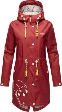 Damen Regenjacke mit Kapuze leicht gefüttert Regenmantel Wasserdicht B924 [B924-Dance-Weinrot-Gr.M]