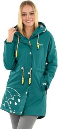 Damen Regenjacke mit Kapuze leicht gefüttert Regenmantel Wasserdicht B924 [B924-Dance-Dunkelgruen-Gr.XS]