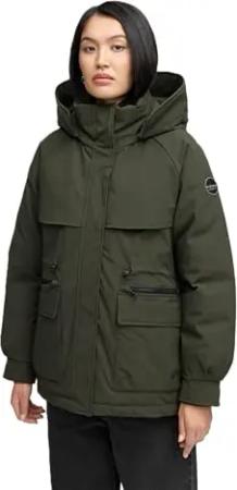 Damen Winterjacke (S-3XL) - mit abnehmbarer Kapuze und fleecegefüttertem Kragen - N096 - DarkOlive Größe M - Gr.M