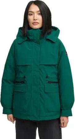 Damen Winterjacke (S-3XL) - mit abnehmbarer Kapuze und fleecegefüttertem Kragen - N096 - Evergreen Größe XL - Gr.XL