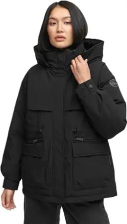 Damen Jacke Frühling Outdoor Wasserabweisend Übergangsjacke Parka Mantel Kapuze Babetaa XS - XXL 5 Farben 2021 (Schwarz, XS - 34)