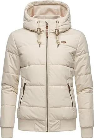 Damen wasserdichte Winterjacke kurze Herbstjacke mit Fleecefutter und Kapuze Oggie Block Warm YOUMODO Ecru Gr. L