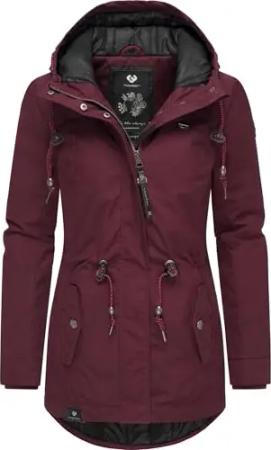 Damen Winterjacke warmer Kurzmantel mit Kapuze Monadis Black Label Intl Wine Red22 Gr. XS