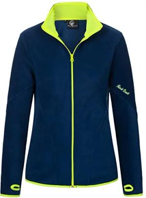 Damen Fleecejacke warm Übergangsjacke Windbreaker Fleece Jacken Outdoorjacke Stehkragen Damenjacke Teddyfleece Sweatjacke Pullover D-472 Navy S