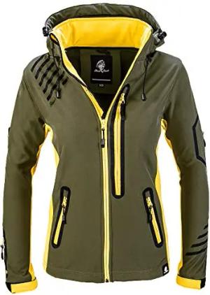 Damen Softshell Jacke Mantel Outdoor-Mantel Damenmantel Softshellmantel Winterjacke Wasserabweisend Kapuze Übergang D-423 Neongelb XS