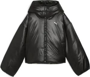 Damen Wardrobe Essentials Shiny Wattierte Kapuzenjacke M, Black
