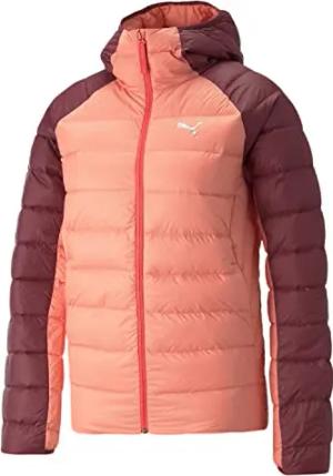 W Packlite Hooded Down Jacket Colorblock-Pink-Rot - Daunen Warme wasserabweisende Damen Daunenjacke, Größe S - Farb