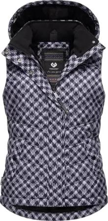Damen ärmellose Outdoorweste warme wasserdichte und atmungsaktive Winterjacke mit angesagtem Hahnentritt Muster und abnehmbarer Kapuze Hesty Print YOUMODO Cloud Gr. S