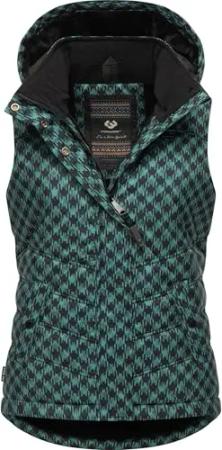 Damen ärmellose Outdoorweste warme wasserdichte und atmungsaktive Winterjacke mit angesagtem Hahnentritt Muster und abnehmbarer Kapuze Hesty Print YOUMODO Ocean Green Gr. XL