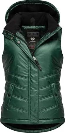 Damen ärmellose shiny Outdoorweste warme wasserdichte Winterjacke mit abnehmbarer Kapuze Hesty Bling YOUMODO Green Gr. XXL
