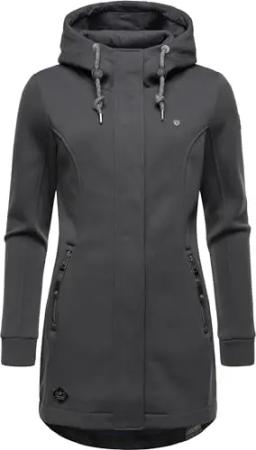 Damen leichter Rippstrick-Übergangsmantel lang windabweisend mit Kapuze Letti Bonded Dark Grey Gr. S