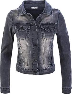 Damen Jeans Jacke Übergangs Jacke Denim Blouson Stretch Kurz Classic Jeansjacken Urban Stonewash D-401 Grau L
