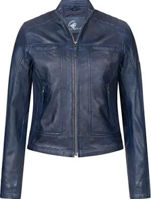 Damen Lederjacke Biker Jacke Echtleder Motorradjacke Leder Jacken Damenjacke Stehkragen Winterjacke Übergangsjacke D-486 Dunkelblau S