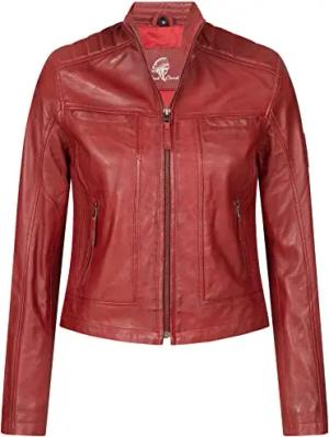 Damen Lederjacke Biker Jacke Echtleder Motorradjacke Leder Jacken Damenjacke Stehkragen Winterjacke Übergangsjacke D-486 Rot XS