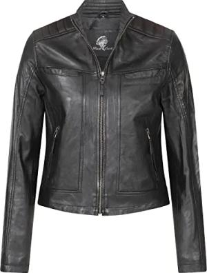 Damen Lederjacke Biker Jacke Echtleder Motorradjacke Leder Jacken Damenjacke Stehkragen Winterjacke Übergangsjacke D-486 Schwarz XS